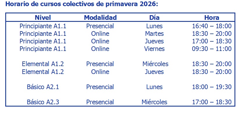 - Niveles: Principiante, Elemental, Básico, Intermedio