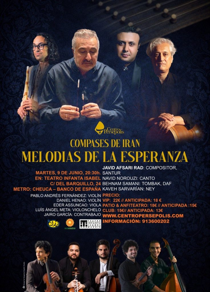 erentes tradiciones culturales europeas y persa utilizando los instrumentos de música tradicional iraní como santur, ney, laúd, tonbak, daf, kuze acompañados por otros instrumentos de la música clásica como violín, viola, chelo y contrabajo. Desde entonces la Orquesta Internacional “RUMI ENSEMBLE” ha tenido numerosos actuaciones en distintas paises europeos.