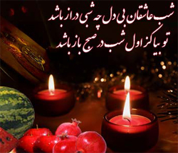 Yalda, la noche más larga del año, solsticio de invierno, es uno de los festivales ancestrales de Irán; se celebra el primer día de Dei, el primer mes del invierno, que coincide con el 21 de diciembre del calendario occidental. Otro nombre para este día señalado es Shabe Chele (la noche de Cuaresma), puesto que los antiguos iraníes dividían los dos meses más fríos del invierno, Dei y Bahman, en dos partes: Cheleye Bozorg, la gran Cuaresma (que eran los primeros cruentos días del mes blanco), y Cheleye Kuchik, la pequeña Cuaresma, los siguientes veinte días.