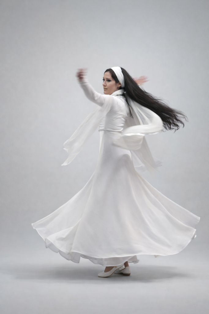 La Danza Mística es conducir cuerpo y alma hacia la luz espiritual del corazón, cruzando el umbral de lo humano, trascendiendo los límites de la percepción hasta alcanzar un estado de trance, de éxtasis místico , de revelación de la verdad de nuestro Ser…causado por la presencia divina en nuestro corazón.
