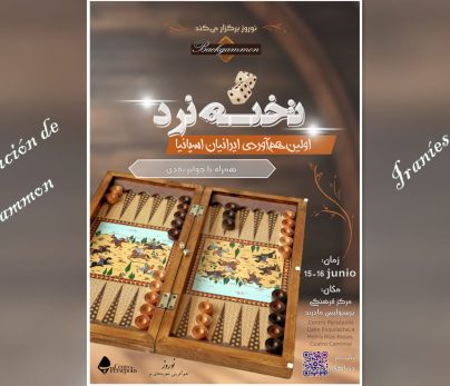 I Competición de Backgammon; Iraníes en España Fecha: 15 y 16 de junio : desde 11h. de la mañama Lugar: Centro Persépolis Calle Esquilache,4 Metro: Ríos Rosas, Cuatro Caminos با همکاری «تجربه نوروز» برگزار میشود @nowruz_experiences «اولین همآوردی تخته نرد...