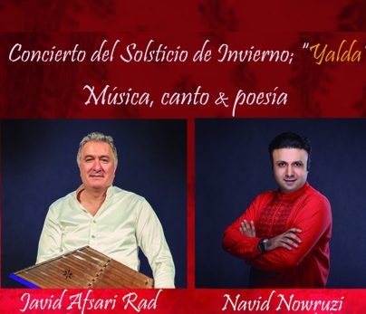 TICKETS SOLD OUT. «ENTRADAS AGOTADAS» El virtuoso de Santur JAVID AFSARI y el cantante NAVID NOWRUZI nos brindan el concierto: «Yalda» a causa del Solsticio de invierno. El domingo 22 de diciembre a las 19:00h. en la Sala Ecosofía Esquina...