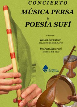A cargo de: Kaveh Sarvariá (ney, tombak, duduk) Pedram Khosravi (daf, tambur, kuzeh) Recital bilingüe persa-castellano Kaveh Sarvarian: Músico y compositor. A parte de estudios académicos (master de Composición, Universidad de Arte de Teherán) ha realizado numerosos conciertos...