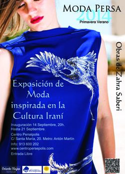 De 14 a 21 de Septiembre Horario: por las mañanas de 10.30 h. a 14.30 y por las tardes de 16.30 a 2o.30 h. Zahra Saberi, la joven diseñadora de moda de origen iraní, después de su éxito en Italia,...