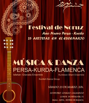 Festival de Noruz «MÚSICA & DANZA PERSA-KURDA- FLAMENCA» 25 ARTISTAS EN EL ESCENARIO Nos acercamos a la primavera y la llegada del «Noruz«, la fiesta milenaria del año nuevo en Asia Central. Este año lo festejamos a lo grande...