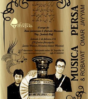 A cargo de: Kaveh Sarvarián & Pedram Khosravi Ney, tombak, daf Recital bilingüe persa-castellano de Rubayat Por: Gloria Garrido y Ahmad Taheri Aforo limitado Kaveh Sarvarian: Músico y compositor. A parte de estudios académicos (master de Composición, Universidad de Arte de...