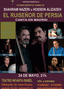 El mejor vocalista del mundo música persa-sufí, Shaharam Nazeri , regresa a Madrid después de 20 años. Este maestro de origen kurdo estará acompañado por otro máximo exponente de la música tradicional persa, Hossein Alizadeh...