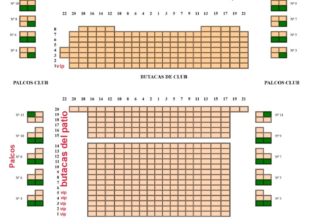 VIP, Butacas de Patio, Butacas de Club (Anfiteatro)